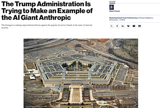 Over at The Unpopulist: "Trump Wants to Destroy Anthropic Because It Is Doing Congress’ Job of Preventing Him from Abusing AI"